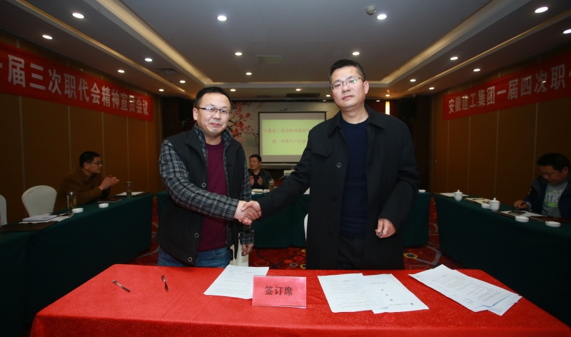 會議首先對安徽建工集團一屆四次職代會精神及安建建材一屆三次職代會精神進行了宣貫。蚌埠建材黨支部書記、總經(jīng)理陶良敬重點解讀了《蚌埠建材2018年總經(jīng)理工作報告》內(nèi)容,并與各中心負責人簽訂了《年度安全目標責任書》。