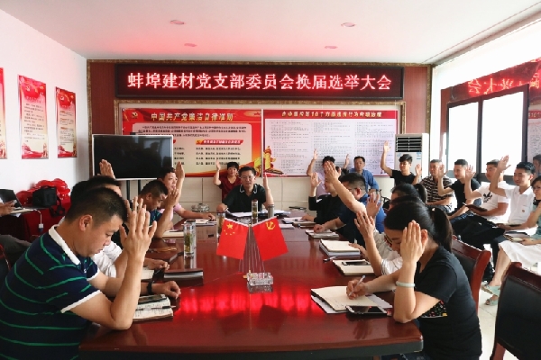 6月20日,蚌埠建材黨支部在公司一樓會議室召開支部換屆選舉黨員大會,會議由黨支部書記、總經(jīng)理陶良敬主持,全體黨員參加此次會議。