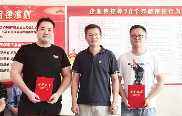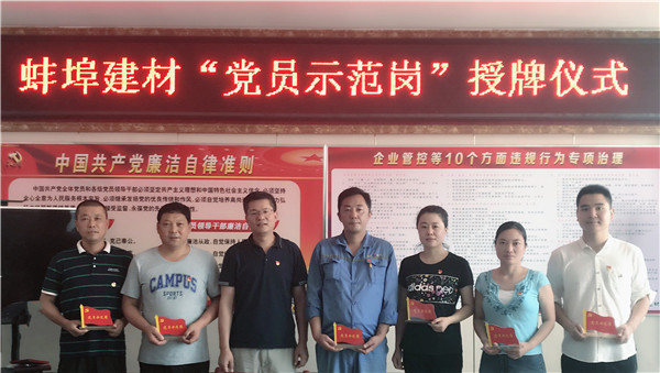 在表彰大會(huì)上,蚌埠建材黨支部副書(shū)記、工會(huì)主席沙薇莉首先宣讀了蚌埠建材優(yōu)秀黨員表彰決定,并對(duì)四位優(yōu)秀黨員頒發(fā)了榮譽(yù)證書(shū)及獎(jiǎng)金;接著,蚌埠建材黨支部組織委員、副經(jīng)理施松宣讀了蚌埠建材黨員先鋒示范崗評(píng)選結(jié)果并進(jìn)行了授牌;隨后,蚌埠建材副經(jīng)理陳正勇宣讀了安建建材《我與企業(yè)改革共成長(zhǎng)》征文活動(dòng)獲獎(jiǎng)的職工名單并進(jìn)行了頒獎(jiǎng);大會(huì)最后,施松同志帶領(lǐng)全體黨員面向黨旗進(jìn)行了入黨宣誓儀式,重溫入黨誓詞。