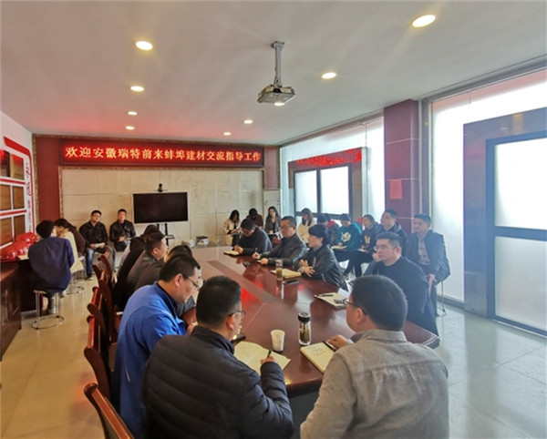 3月26日,安徽瑞特黨支部書記、經(jīng)理施松率公司領(lǐng)導(dǎo)班子和各部門業(yè)務(wù)骨干等一行10余人赴蚌埠建材開展工作交流。雙方在完成既定工作交流后于公司一樓會(huì)議室召開交流會(huì),蚌埠建材領(lǐng)導(dǎo)班子、各部門負(fù)責(zé)人參加,會(huì)議由黨支部書記、工會(huì)主席沙薇莉主持。