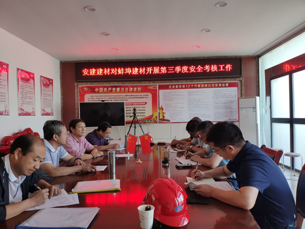 9月23日,安建建材黨委委員、副總經(jīng)理徐友修帶領(lǐng)安全生產(chǎn)部對蚌埠建材進(jìn)行了三季度安全檢查考核,安建建材副總經(jīng)理、蚌埠建材公司黨支部書記、總經(jīng)理陶良敬陪同檢查。