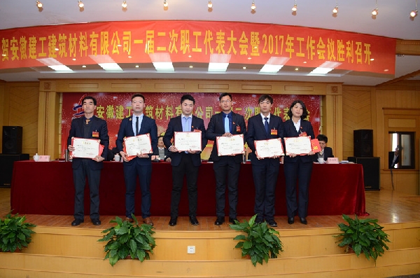 大會聽取并審議通過了《總經(jīng)理工作報告》、《財務工作報告》、《業(yè)務招待費使用情況報告》、《安徽建工建筑材料有限公司薪酬管理制度》、《安徽建工建筑材料有限公司職工聯(lián)席會議制度》,簽訂了目標責任書,表彰了2016年度先進單位、先進集體、先進個人;集團黨委對公司領導班子成員進行了2015—2016年度民主測評。