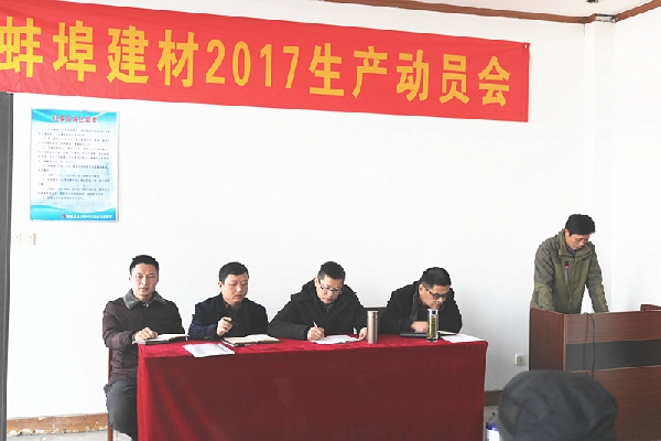 春回大地,萬象更新,2017年2月13日,蚌埠建材召開“2017年度生產(chǎn)動員會”,會議由生產(chǎn)管理中心負(fù)責(zé)人邵亞飛主持,蚌埠建材總經(jīng)理陶良敬,副總經(jīng)理施松,質(zhì)量管理部門負(fù)責(zé)人李粹永出席會議,設(shè)備及生產(chǎn)管理人員,生產(chǎn)一線全體操作人員參加會議。