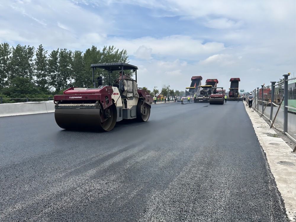 新途建材G347通江大道03標段SMA-13瀝青面層試驗段順利攤鋪完成