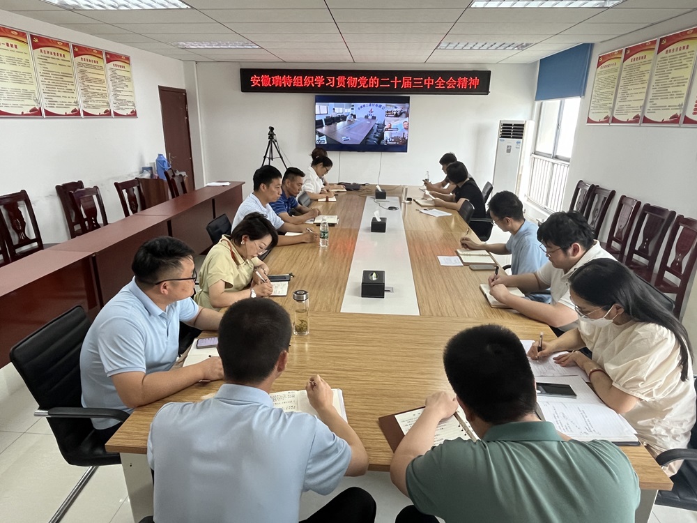 8月30日下午,安徽瑞特召開(kāi)學(xué)習(xí)黨的二十屆三中全會(huì)精神專題會(huì)議,公司全體黨員、各部門(mén)負(fù)責(zé)人及青年職工參加。會(huì)議學(xué)習(xí)了《中共中央關(guān)于進(jìn)一步全面深化改革、推進(jìn)中國(guó)式現(xiàn)代化的決定》和《中國(guó)共產(chǎn)黨第二十屆中央委員會(huì)第三次全體會(huì)議公報(bào)》。