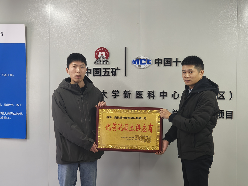 12月26日,安徽瑞特榮獲中國十七冶集團有限公司安徽醫(yī)科大學(xué)新醫(yī)科中心新校區(qū)施工總承包項目2024年“優(yōu)質(zhì)供應(yīng)商”稱號。