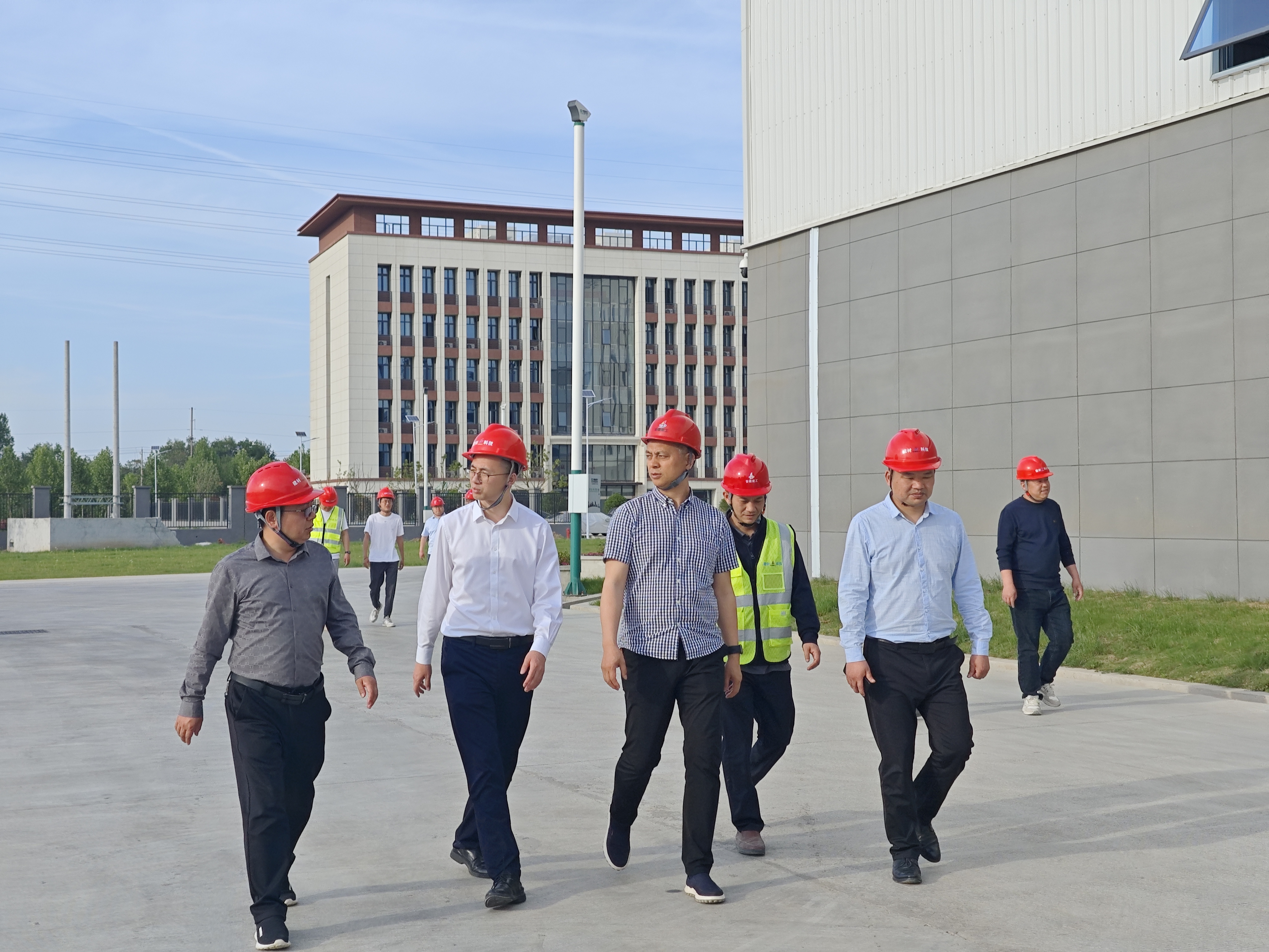 胡永明一行深入園區(qū),實(shí)地考察了園區(qū)布局及生產(chǎn)運(yùn)營情況。在隨后舉行的座談會(huì)上,雙方就攜手推進(jìn)集團(tuán)產(chǎn)業(yè)鏈協(xié)同政策走深走實(shí)進(jìn)行了深入交流。