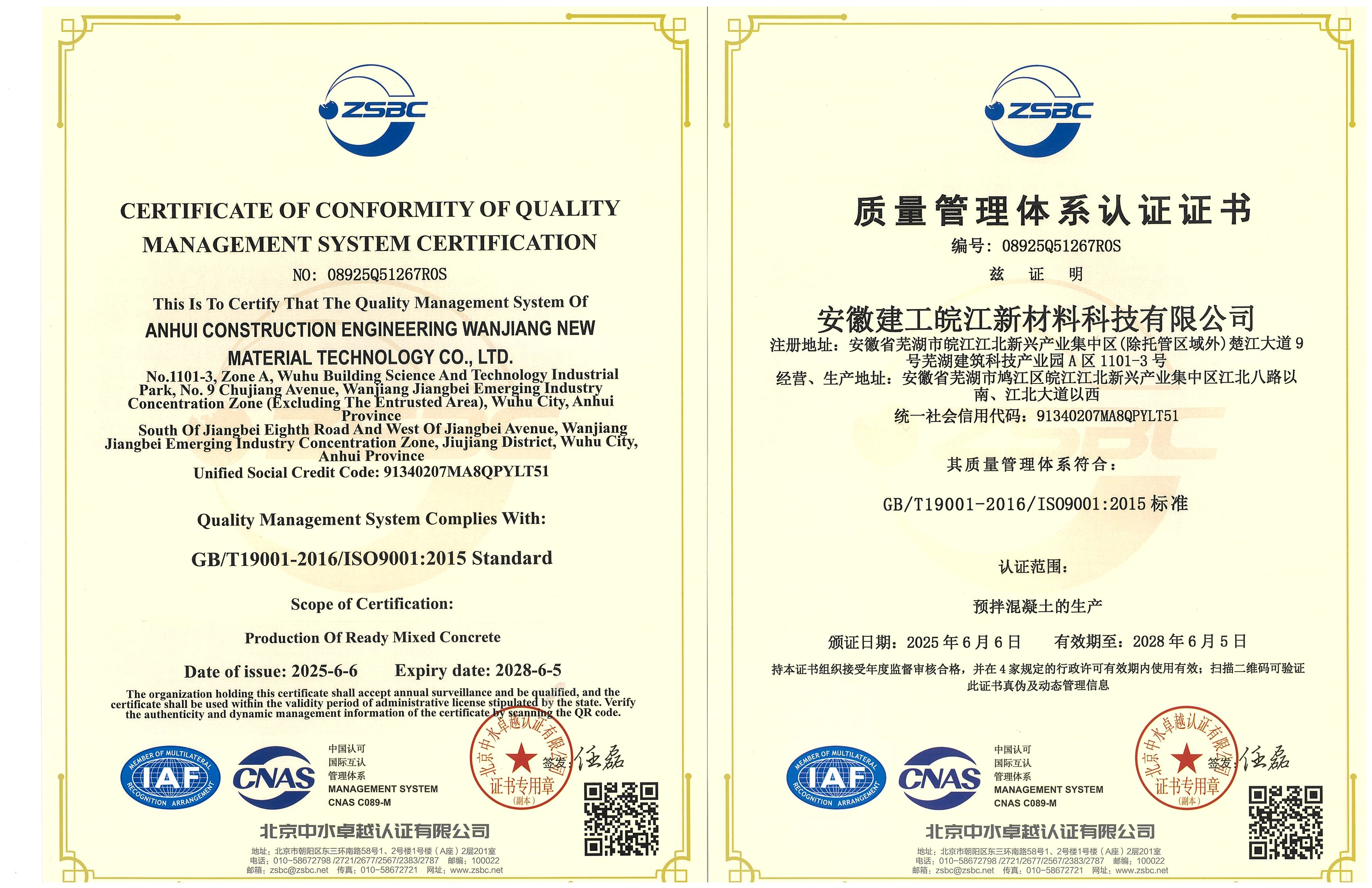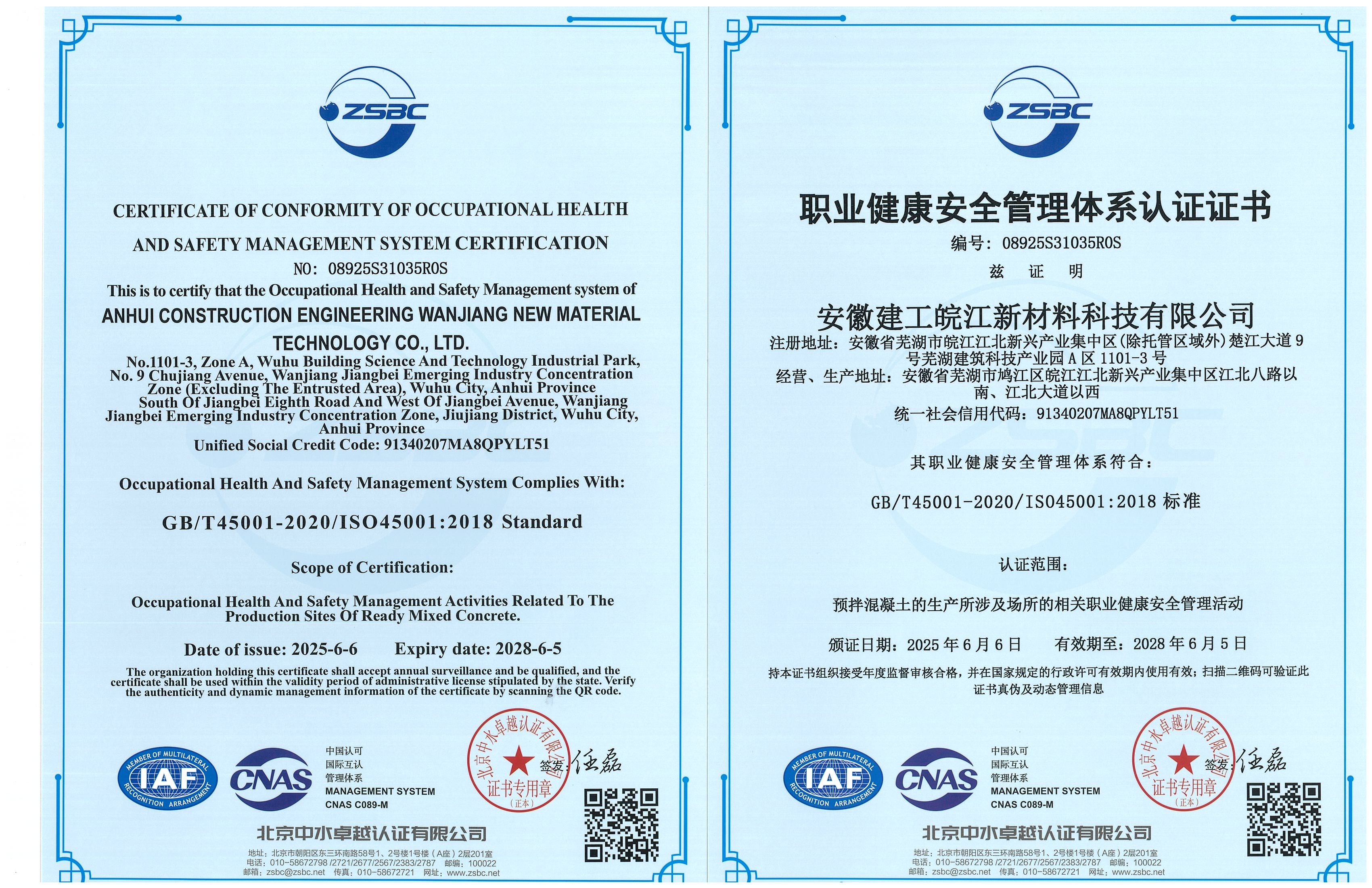 2025年6月6日,安徽建工皖江新材料科技有限公司成功榮獲三體系認(rèn)證證書。
