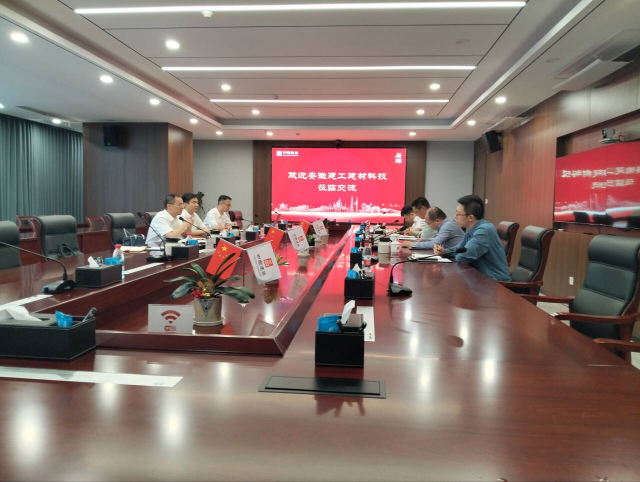 中建國際投資(安徽)有限公司及建工建材雙方有關(guān)單位、部門負(fù)責(zé)同志參加座談。