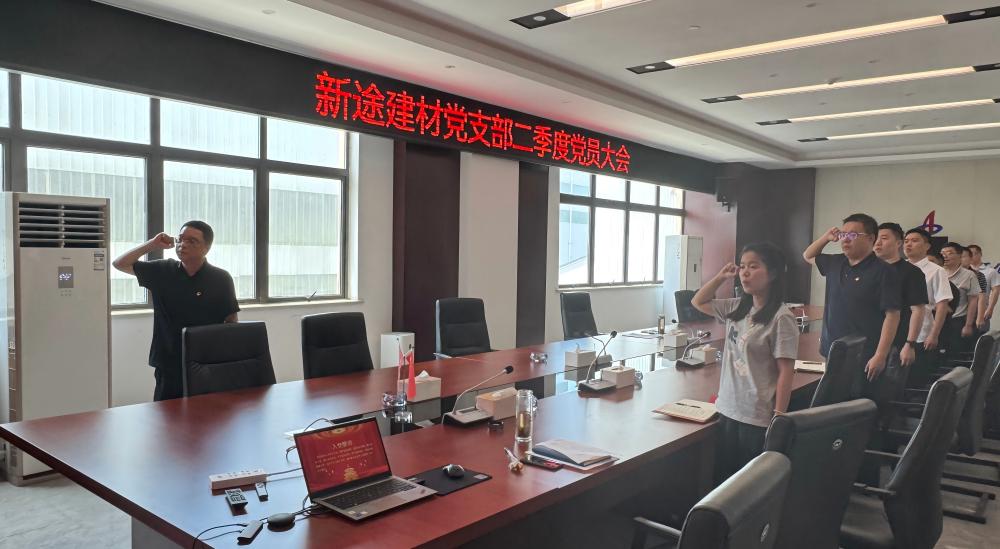 6月30日,新途建材黨支部在三樓會議室召開二季度黨員大會,會議由支部書記曹祝林主持,全體黨員參會。