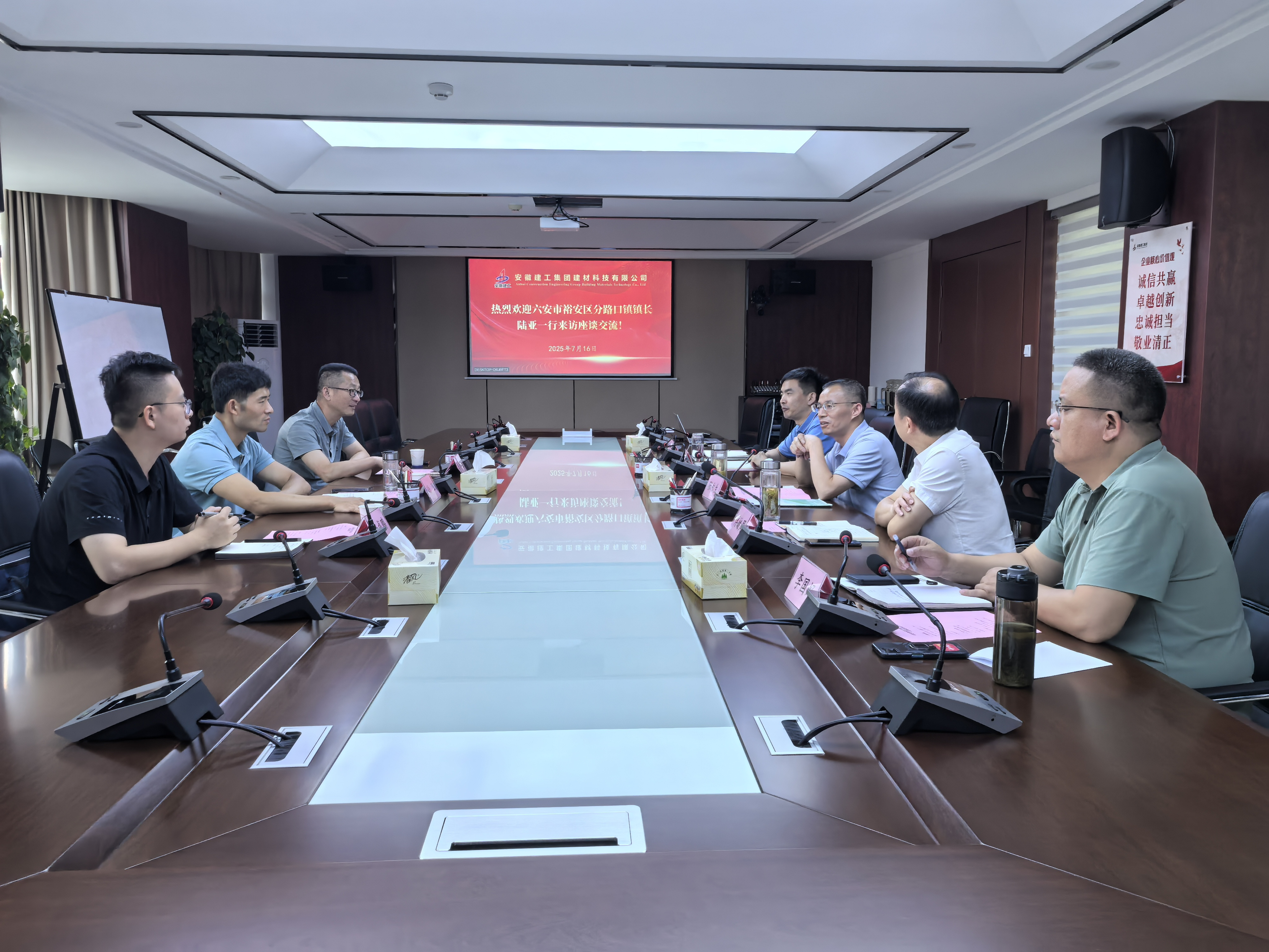 7月16日上午,六安市裕安區(qū)分路口鎮(zhèn)黨委副書(shū)記、鎮(zhèn)長(zhǎng)陸亞一行到訪建工建材。建工建材黨委委員、副總經(jīng)理張永生熱情接待并舉行工作會(huì)談。