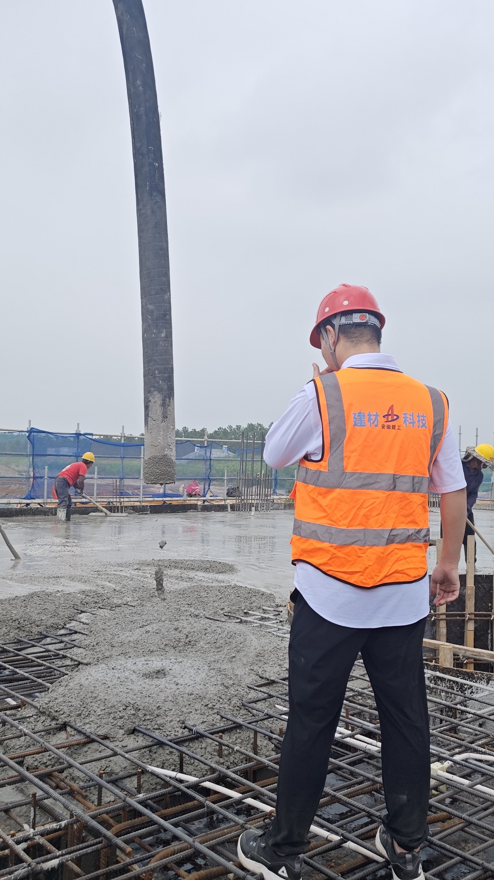 淮上站生產(chǎn)組長楊國威頭頂烈日巡查,既檢查設備作業(yè)安全性,又密切關注倉面澆筑情況,用細致守護現(xiàn)場安全與施工質(zhì)量。