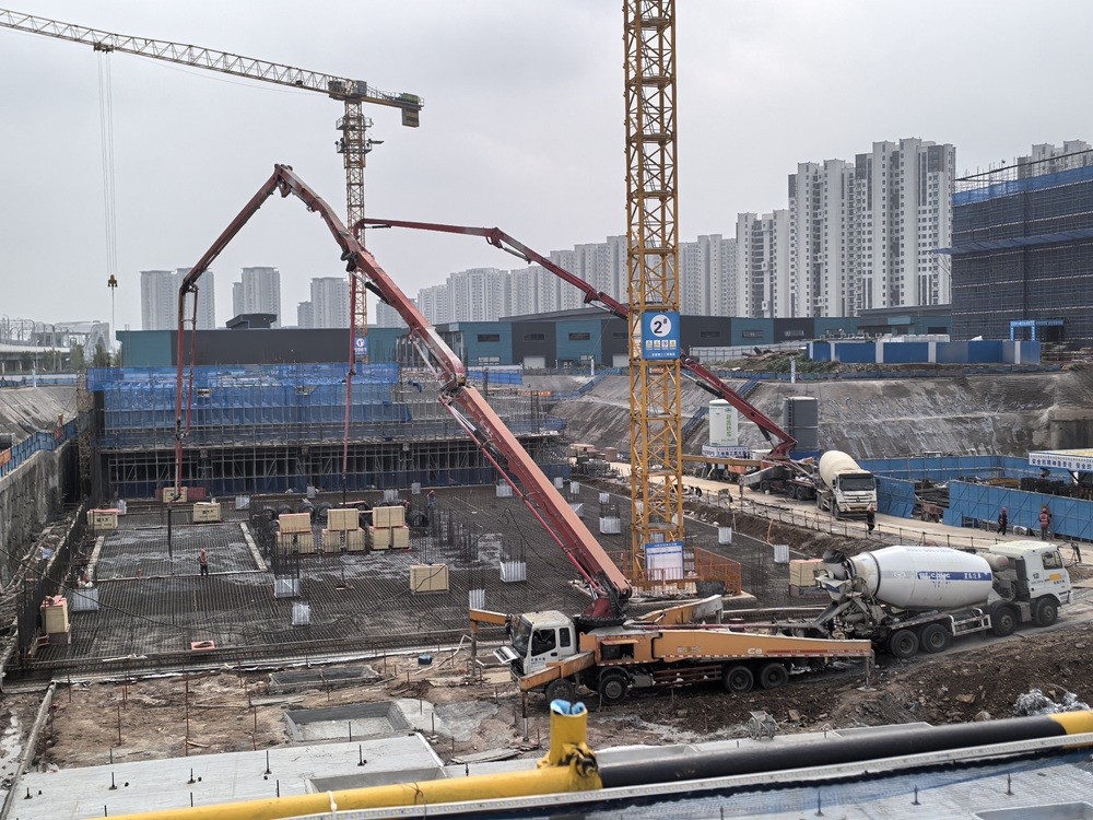 為確保澆筑順利,建工瑞特新材、建工擎工新材領(lǐng)導(dǎo)班子國(guó)慶期間多次赴項(xiàng)目一線勘察場(chǎng)地、督導(dǎo)進(jìn)度,公司一線員工堅(jiān)守崗位,緊密配合,針對(duì)設(shè)備配置、澆筑流程等關(guān)鍵環(huán)節(jié),制定了科學(xué)合理的施工方案,明確了各環(huán)節(jié)的責(zé)任分工與時(shí)間節(jié)點(diǎn),為澆筑作業(yè)的順利推進(jìn)提供了全方位、強(qiáng)有力的保障。