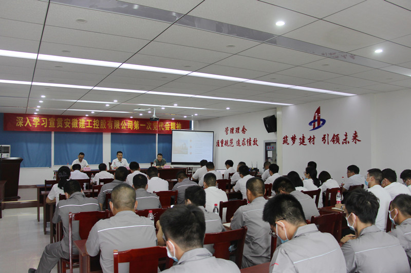 7月19日上午,建工股份副總經(jīng)理、建材科技黨委書記、董事長(zhǎng)張鍵赴安徽瑞特新型材料有限公司宣貫建工控股第一次黨代會(huì)精神。建材科技黨委副書記、工會(huì)主席胡運(yùn)春主持宣講會(huì)。