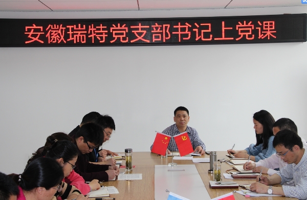 為全面貫徹落實十九大精神,安徽瑞特黨支部于4月12日上午在黨員活動室召開了支部書記上黨課活動。會議由安徽瑞特黨支部書記、經(jīng)理石杰主持,全體黨員、積極分子參加。